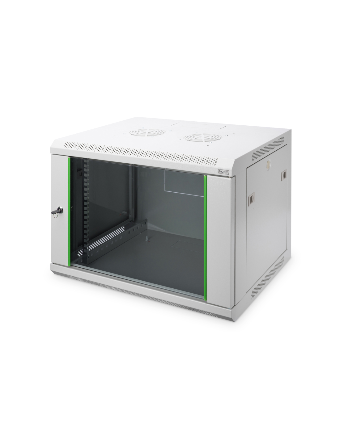 Armario de pared DIGITUS. La serie Unique DIGITUS ha sido fabricada, diseñada y desarrollada para cubrir las altas exigencias de la infraestructura de TI. Estructura de acero robusta para un montaje de pared estable. Puerta de cristal con cerradura y marco de acero. Los laterales son bloqueables y extraíbles