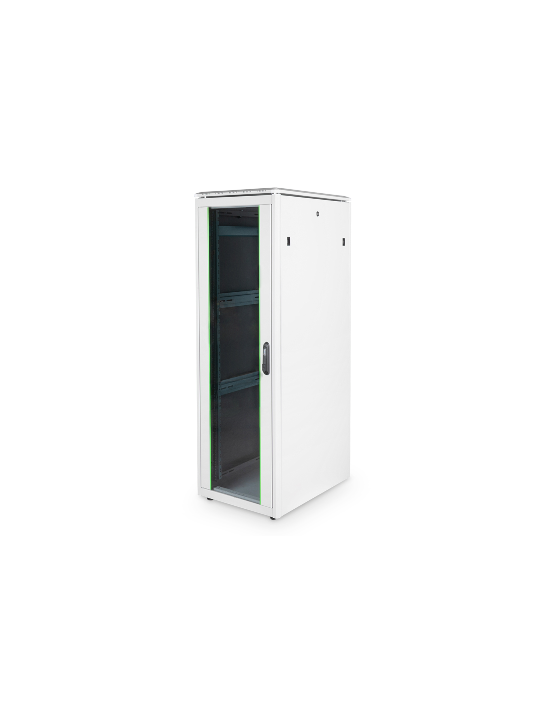Descripción Los armarios de red de la serie Unique se han diseñado y fabricado para un cableado de red especialmente cómodo y flexible. Las sofisticadas optimizaciones ofrecen una estabilidad acorde con el mercado con la máxima flexibilidad. Un chasis base modular, que puede abrirse mediante paneles ciegos atornillados de 483 mm (19"), ofrece espacio suficiente para cables de todo tipo. También hay entradas de cables con cepillos en la parte trasera del chasis base. Las bandas de escobillas traseras situadas encima y debajo de la puerta trasera (a partir de 26U) permiten su uso en una amplia gama de escenarios de aplicación. Los amplios conductos de cables verticales con ayudas para el guiado de cables y tapa, instalados en la parte delantera (a partir de 800 mm de ancho de armario), completan a la perfección las versátiles características del armario de red. En el interior hay instalados dos pares de carriles de perfil de 483 mm (19") galvanizados y con manivela, etiquetados con unidades de altura que pueden leerse en direcciones opuestas. Se pueden ajustar de forma continua y están conectados a puntales de profundidad adicionales en el armario. Cada armario es una robusta construcción de chapa de acero de hasta 1,5 mm de grosor. La coloración se realiza mediante recubrimiento electrostático en polvo en los colores estándar gris (RAL 7035) y negro (RAL 9005). Los paneles laterales y las puertas modulares bloqueables y desmontables mejoran la accesibilidad. Las bisagras de las puertas pueden cambiarse. Además, los armarios pueden desmontarse completamente en caso necesario gracias a su diseño desmontable. Datos técnicos Grado de protección IP20 Puerta delantera totalmente de marco de acero con cristal de seguridad certificado, de una sola pieza Manilla giratoria con cerradura semicilíndrica de perfil incl. llave tipo 333 en la puerta delantera Puerta trasera de acero con cerradura redonda incl. llave tipo 333, de una hoja Cierre de 1 punto en todas las puertas Paneles laterales desmontables con cerradura de guillotina tipo 333 y cierre a presión adicional Incl. 4 pies niveladores M10, cerrados Rieles de perfil de 483 mm (19") montados en la parte delantera y trasera dentro del armario, ajustables sin escalonamiento Los raíles de perfil de 483 mm (19") están galvanizados y numerados en sentido contrario a las unidades de altura Los raíles de perfil de 483 mm (19") están conectados a puntales de profundidad para aumentar la estabilidad Gran capacidad de carga de los raíles perfilados de 483 mm (19") de hasta 1200 kg Profundidad de montaje de los componentes mín.-máx.: 563 - 743 mm Chasis base modular y abrible con paneles ciegos extraíbles de 19" (450 x 270 mm) Entradas de cables en la base: 400 x 170 mm (trasera) El techo está preparado para alojar un ventilador y una cubierta desmontable. Puntos de puesta a tierra en la caja y en las puertas/paredes desmontables Listo para su uso inmediato: La entrega se realiza montada (el armario se puede desmontar completamente si es necesario) Atributos Ancho: 600 mm Capacidad de carga: 1200 kg Color: gris claro, RAL 7035 Paneles laterales: Ambos lados Profundidad: 800 mm Puerta delantera: Puerta de cristal, apertura simple Puerta posterior: Puerta de acero y entrada para cables, apertura simple Tipo de armario: Armario de red Unidades: 36 Clase de protección IP: IP20 Montado: sí Contenido del paquete Juego de cables de puesta a tierra Juego de instalación (tornillos, tuercas enjauladas, arandelas) 2 x llave 4 x pie nivelador, M10