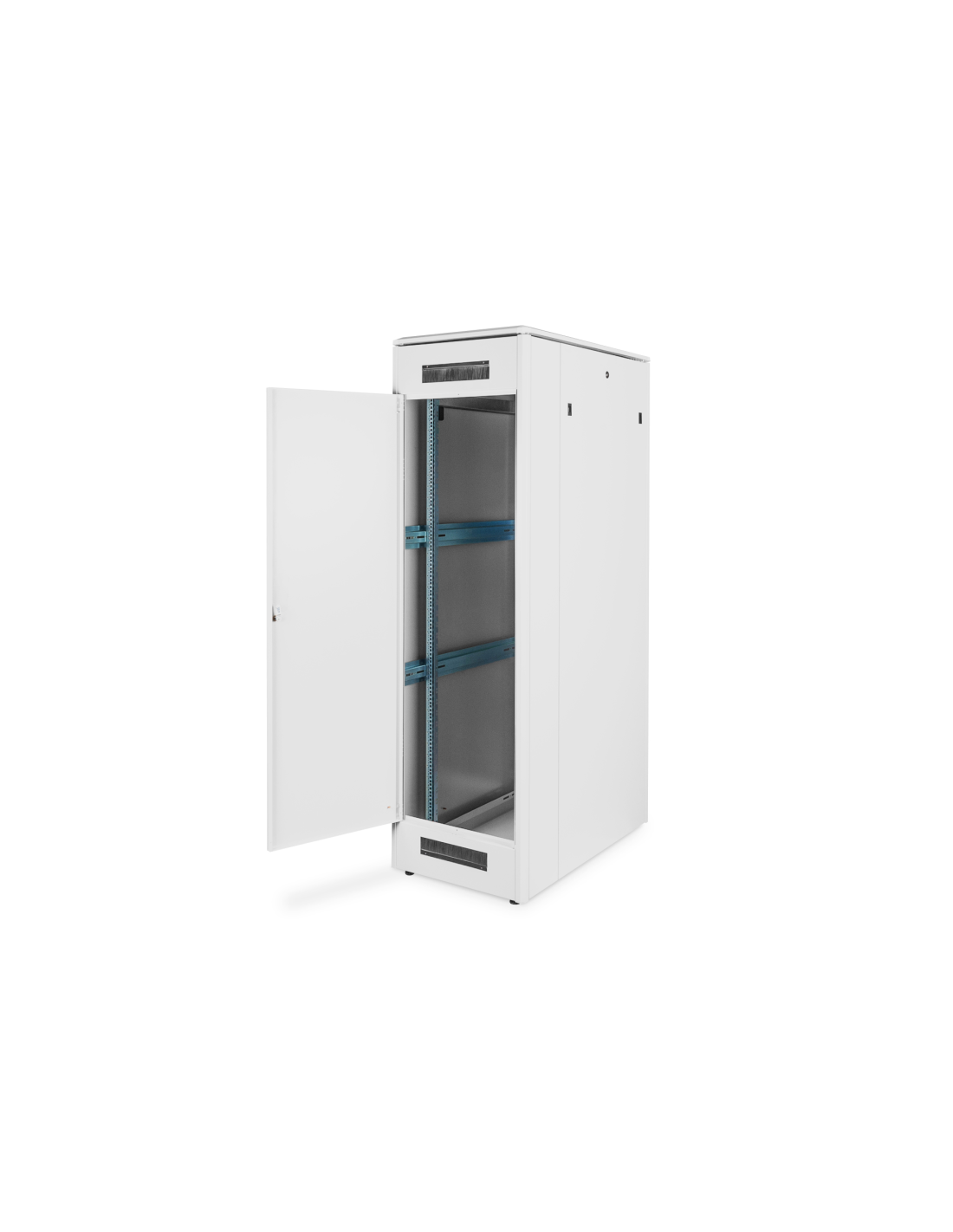 El armario de red DIGITUS de la serie Unique está diseñado y producido para el cableado y los componentes de la red. Las diferentes mejoras tienen como resultado un óptimo rendimiento en calidad y valor añadido. Cada armario está diseñado teniendo en cuenta la facilidad de uso y la estética. La puerta frontal se compone de un marco de metal completo con vidrio de seguridad. La palanca giratoria bloqueable está preparada para la inclusión de semicilindros (adaptador incluido). Todos los paneles laterales se pueden cerrar y extraer fácilmente. Todos los armarios incluyen rieles galvanizados de 483 mm (19'') instalados en la parte delantera y trasera del interior del armario. Son ajustables en profundidad y tienen una marca para cada unidad de altura. Las guías para cableado vertical están instaladas junto a los rieles de perfil frontales (para armarios de 800 mm de ancho). Facilitan la gestión de los cables de conexión e instalación. El techo está preparado para alojar una unidad de ventilador. Los armarios de 483 mm (19") completamente montados están disponibles en diferentes unidades de altura de 22U a 47U, y con una anchura de 600 o 800 mm y una profundidad de 600, 800 o 1000 mm. Colores predeterminados gris (RAL 7035) y negro (RAL 9005); otros colores disponibles bajo petición.