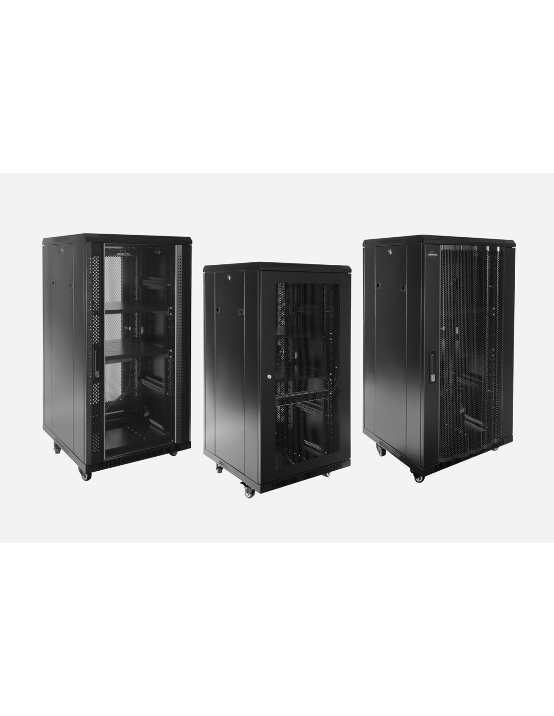 Los armarios rack de suelo de 19" de Monolyth son perfectos para albergar cualquier tipo de sistema electrónico gracias a su disponibilidad de espacio y gran capacidad de almacenaje. Las instalaciones más voluminosas no serán un problema para este tipo de armarios, además está disponible en medidas estándar de ancho, fondo y alto para adaptarse a la mayoría de espacios y tipo de instalaciones. Para este tipo de armario, tenemos disponibles 3 opciones de puertas, puerta perforada, doble perforada o cristal templado.