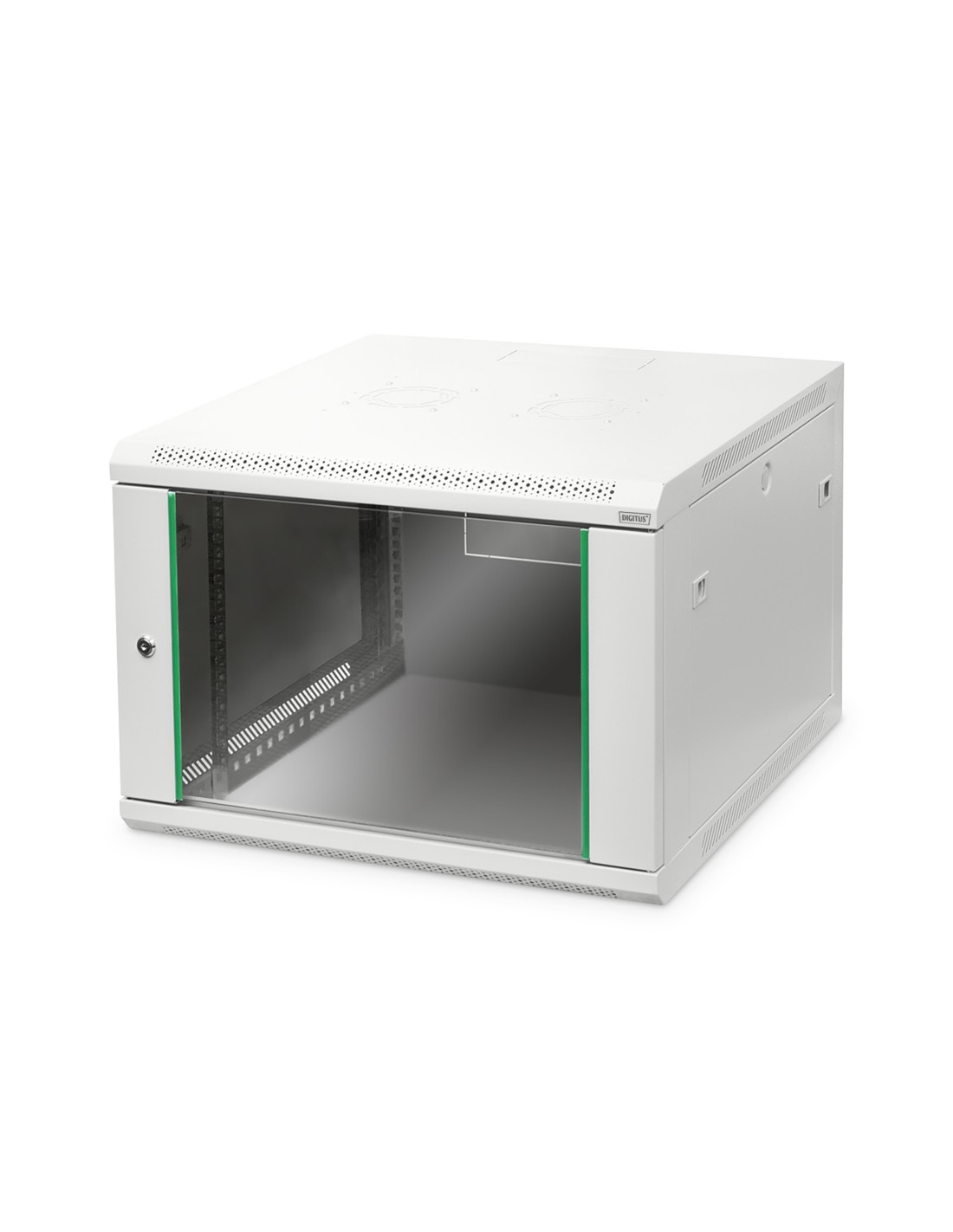 Armario de pared DIGITUS. La serie Unique DIGITUS ha sido fabricada, diseñada y desarrollada para cubrir las altas exigencias de la infraestructura de TI. Estructura de acero robusta para un montaje de pared estable. Puerta de cristal con cerradura y marco de acero. Los laterales son bloqueables y extraíbles