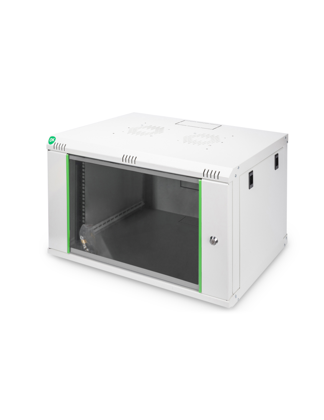 DN-19 07-U-EC DIGITUS - 7U wall mounting cabinet, Dynamic Basic 416x600x450 mm. Las carcasas de pared de la serie Dynamic Basic están hechas de una estructura de chapa de acero robusta. La estabilidad se incrementa mediante los puntos de soldadura. Los paneles laterales son extraíbles y la instalación en la pared es simple y por lo tanto se puede realizar rápidamente. Gracias a su flexibilidad, las carcasas de pared son ideales para todas las aplicaciones de TI y de telecomunicaciones actuales.