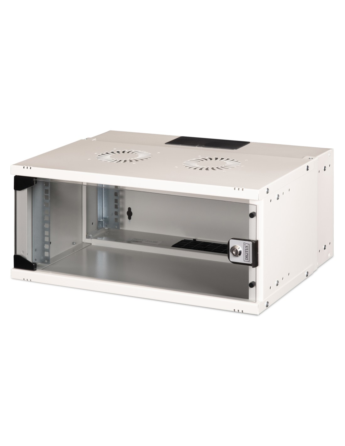 La serie de armarios murales DIGITUS® SOHO Pro se caracteriza por su eficaz entrega en un paquete plano optimizado y su instalación especialmente sencilla.