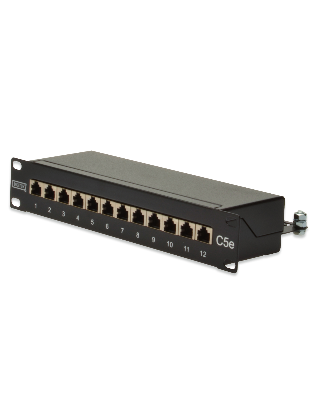 DIGITUS Panel de conexión clase D, CAT 5e, apantallado Número de artículo: DN-91512S EAN: 4016032241508 CAT 5e, panel de conexión clase D, apantallado, 12 puertos RJ45 8P8C, IDC, 1UA, 254 mm (10"), montaje en rack, negro RAL 9005 Optimiza el rendimiento y la calidad de las conexiones de su red. Optimiza el rendimiento y la calidad de las conexiones de su red.