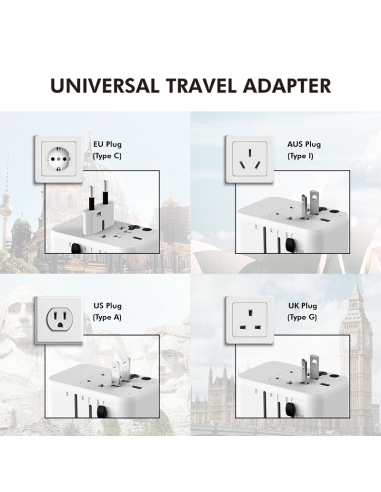 adaptadores para más de 100 Países Adecuado para Europa del Sur, Commonwealth Países,...
