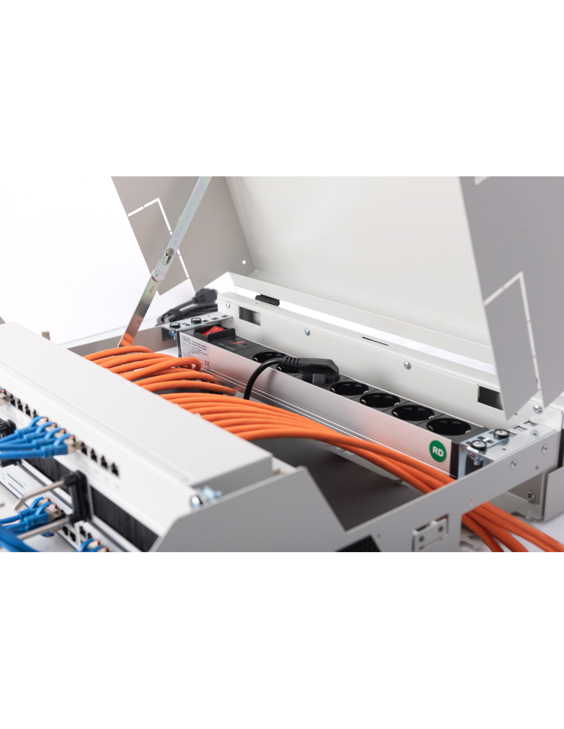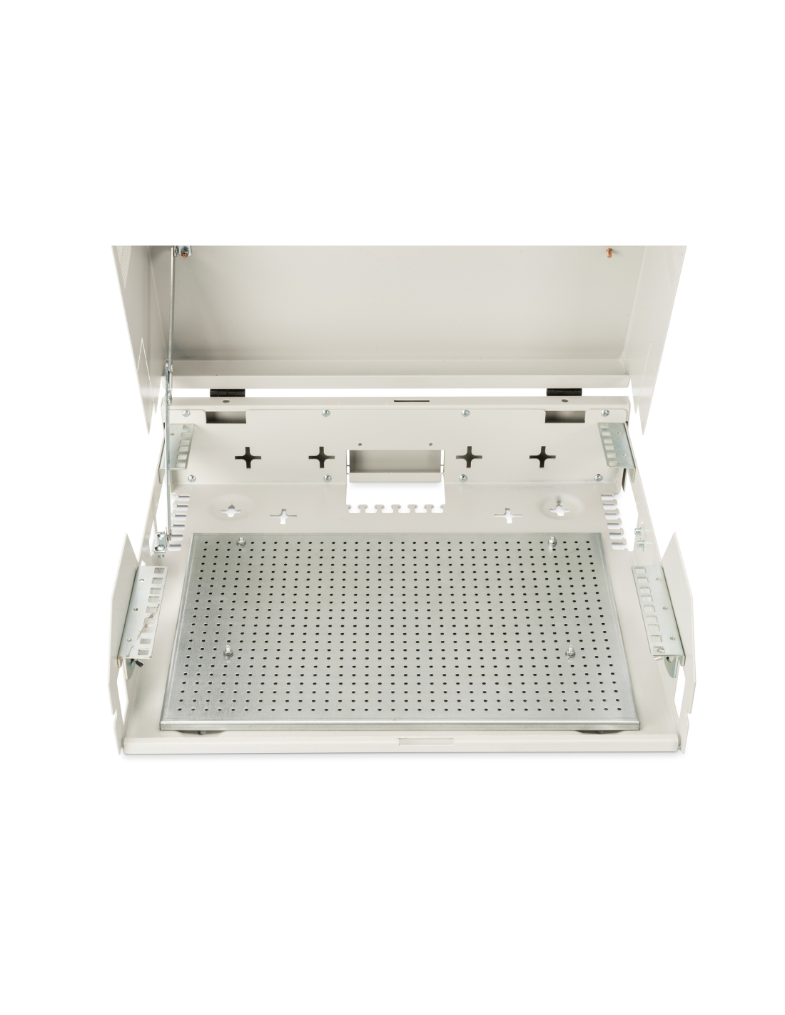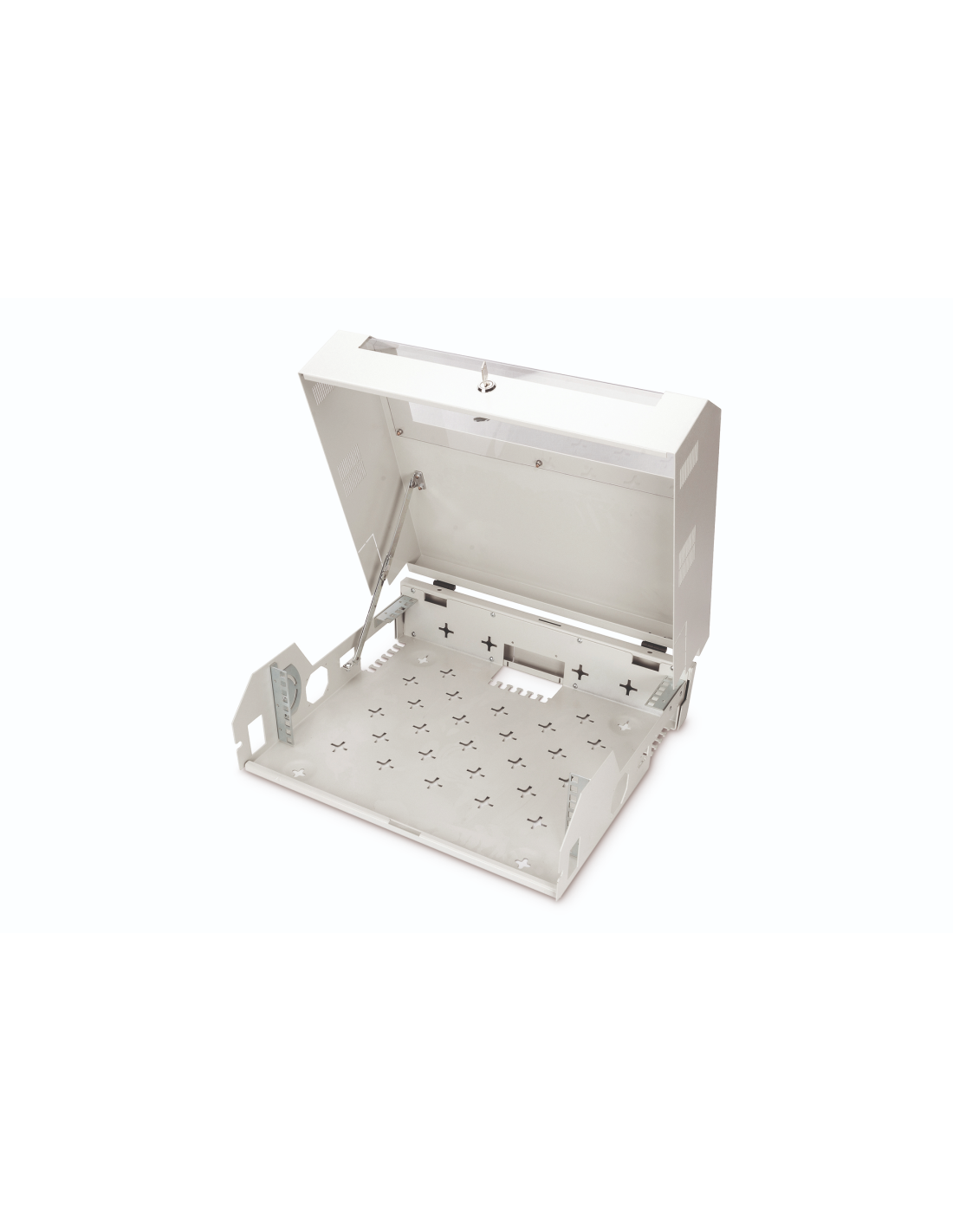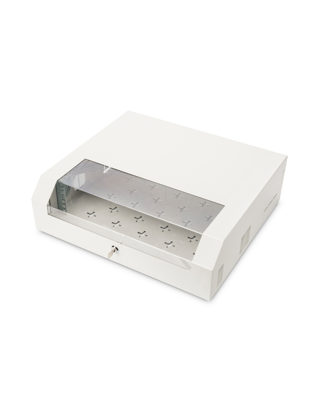 Las carcasas de pared SOHO Slim son perfectas para el alojamiento de componentes activos o pasivos. Se caracterizan por una instalación sencilla que ahorra tiempo. El moderno diseño se adapta a cualquier oficina y hogar. La carcasa dispone de 2 opciones de instalación por separado: En la parte frontal tiene un carril vertical giratorio de 3U. Se puede colocar tanto de forma horizontal como oblicua. En la parte trasera cuenta con un carril horizontal de 2U (fijo), que puede servir, por ejemplo, para componentes de red pasivos. A través de los orificios de montaje perforados en toda la parte inferior de la carcasa también se pueden montar componentes que no sean de 483 mm (19 pulgadas) (por ejemplo, un router DSL, etc.).