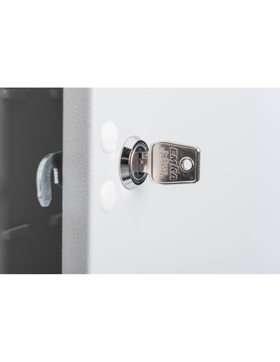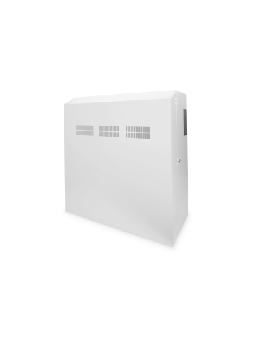 Carcasa de pared - Slim. La carcasa de pared de 483 mm (19) de la serie Slim permite realizar la instalación en vertical de 6 U de profundidad. Gran ahorro de espacio para redes, DVR, sistemas de sonido, aplicaciones de localización y de conexión u otros componentes activos de 483 mm (19 pulgadas). Diseño elegante con superficies de montaje para instalaciones verticales en el interior. Diseño elegante, ideal para pequeñas aplicaciones de automatización del hogar. Superficie de montaje interior de 483 mm (19 pulgadas): 6 U de profundidad. Puerta de entrada con cerradura y ranuras de ventilación.