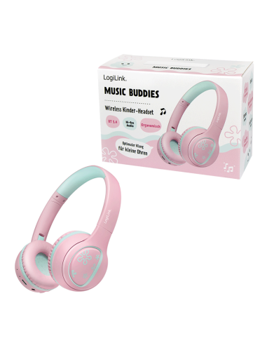 Auriculares para niños BT 5.4, máx. 85 dB, con micrófono, plegables, rosa Logilink