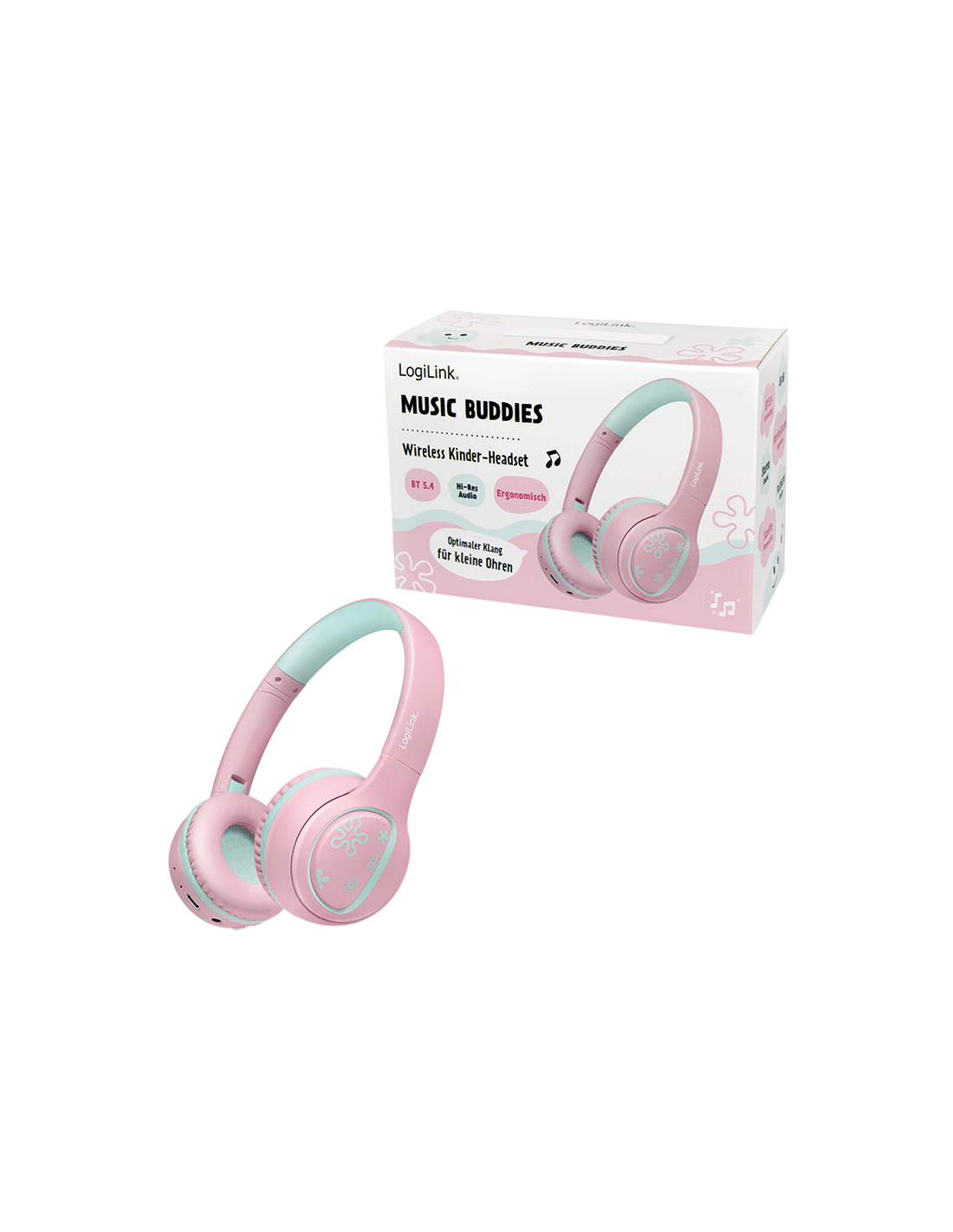 BT0073P Auriculares para niños BT 5.4, máx. 85 dB, con micrófono, plegables, rosa Logilink