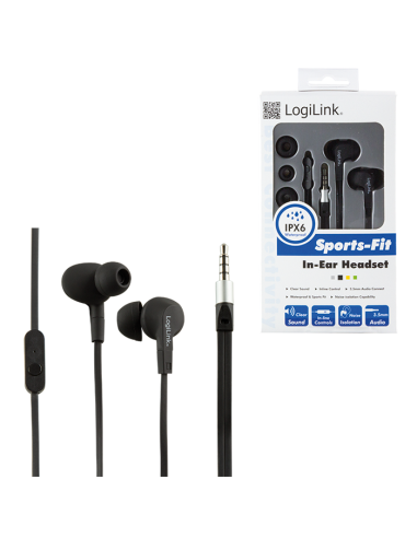 Auriculares intrauditivos estéreo resistentes al agua (IPX6), negros. Experimente los auriculares HS0041-44 de LogiLink, excelentes compañeros para actividades deportivas. El sistema de bloqueo del oído evita que los tapones se caigan y asegura que permanezcan en su lugar. Una característica especial es la carcasa resistente al agua de los auriculares, que le permite lavar su tapón después de un entrenamiento sudoroso y mantiene sus auriculares limpios y agradables