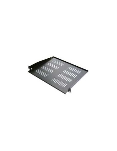 • Bandeja colgante metálica de color negro de ancho 19" y diseñada para ser fijada frontalmente a los bastidores verticales del armario rack.