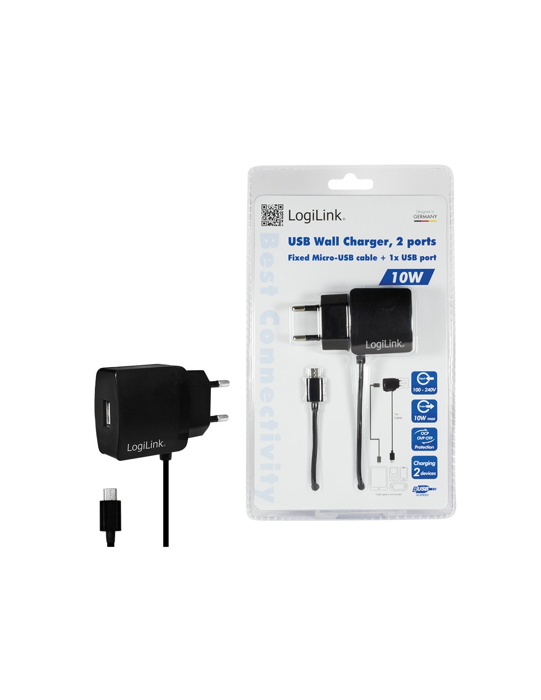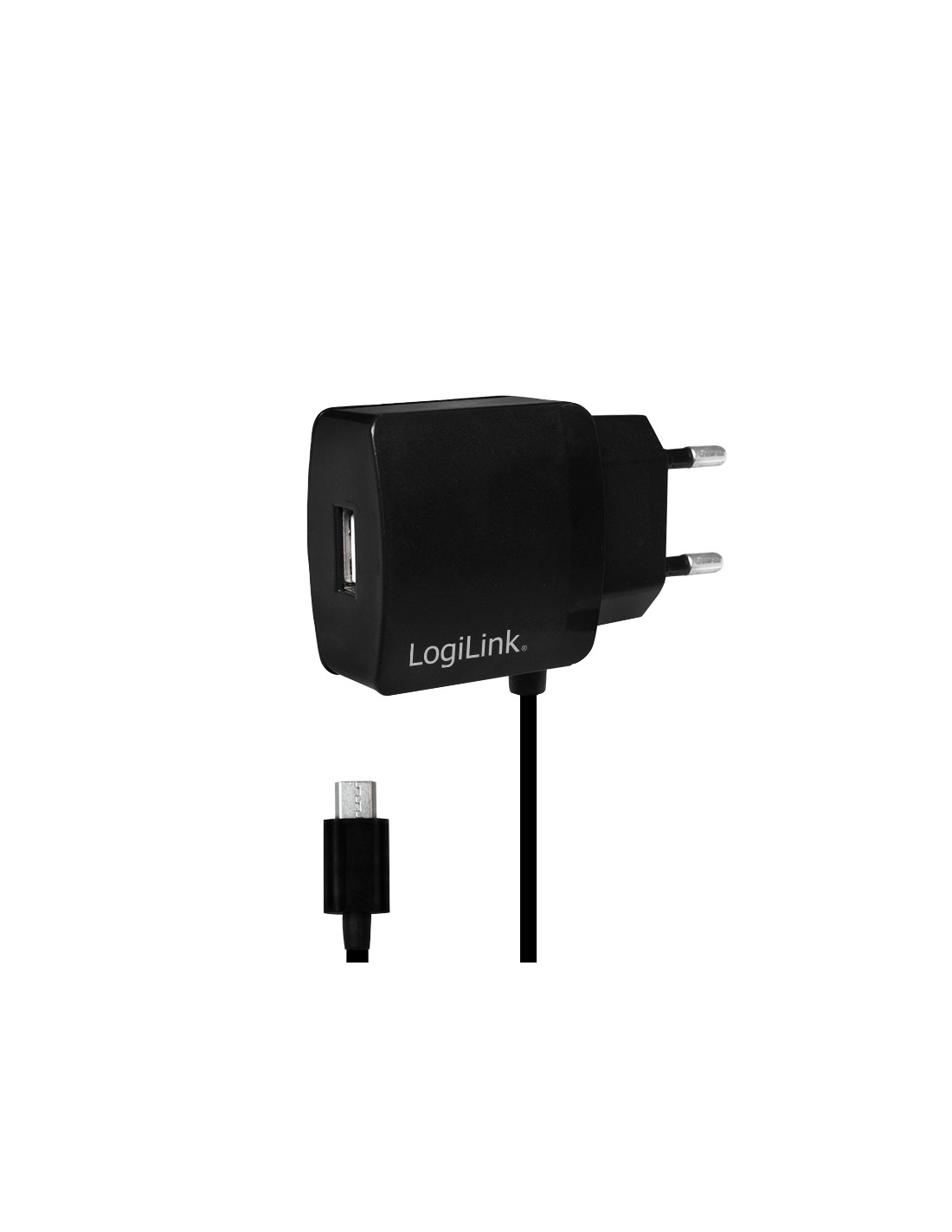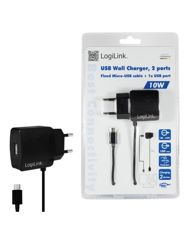 Cargador 10 W USB 1+1 puert USB-A Negro Salida Lateral Con cable Micro-USB Logilink Blister **Ultimas Unidades***