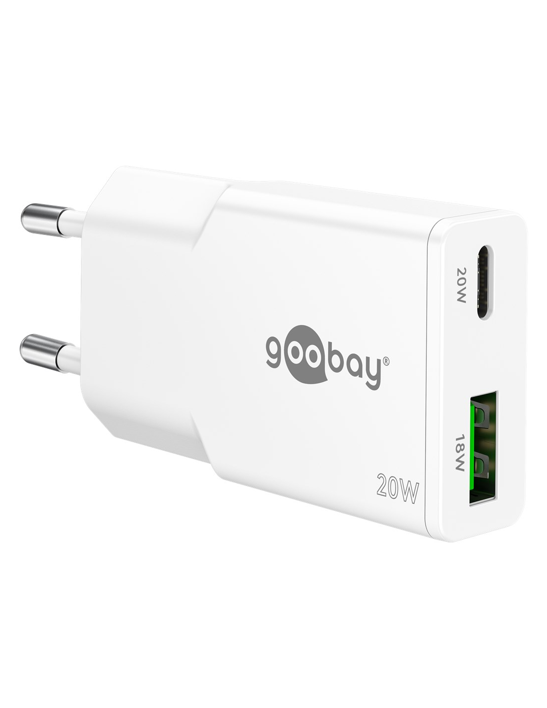 Cargador 20W USB 2 puert. USB-C PD x , USB-A QC 1 GaN Dual Fast Charger Slim Blanco Goobay