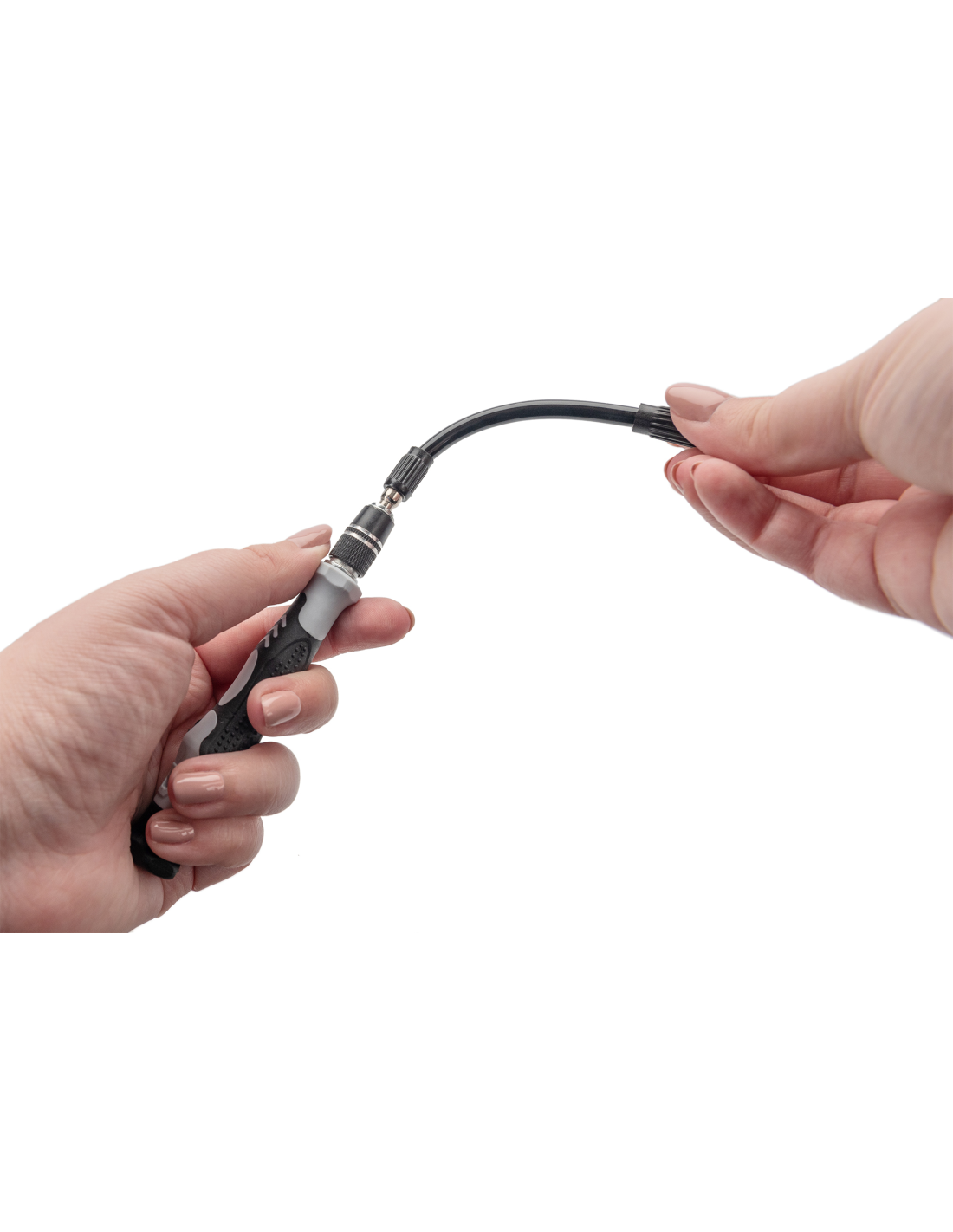 - Este juego de destornilladores dispone de detalles ingeniosos. Por ejemplo, el portapuntas se puede extender en tres niveles para alcanzar tornillos difícilmente accesibles