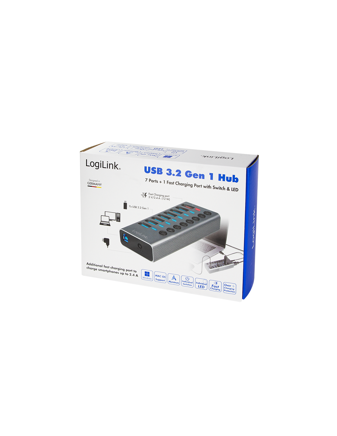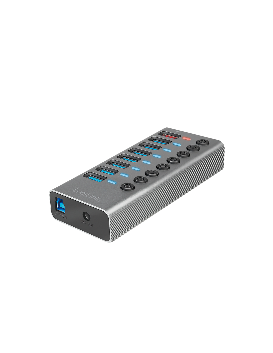 Hub USB 3.0 de 7 puertos con alimentador,+ 1 puerto de carga rapido Aluminio, Logilink