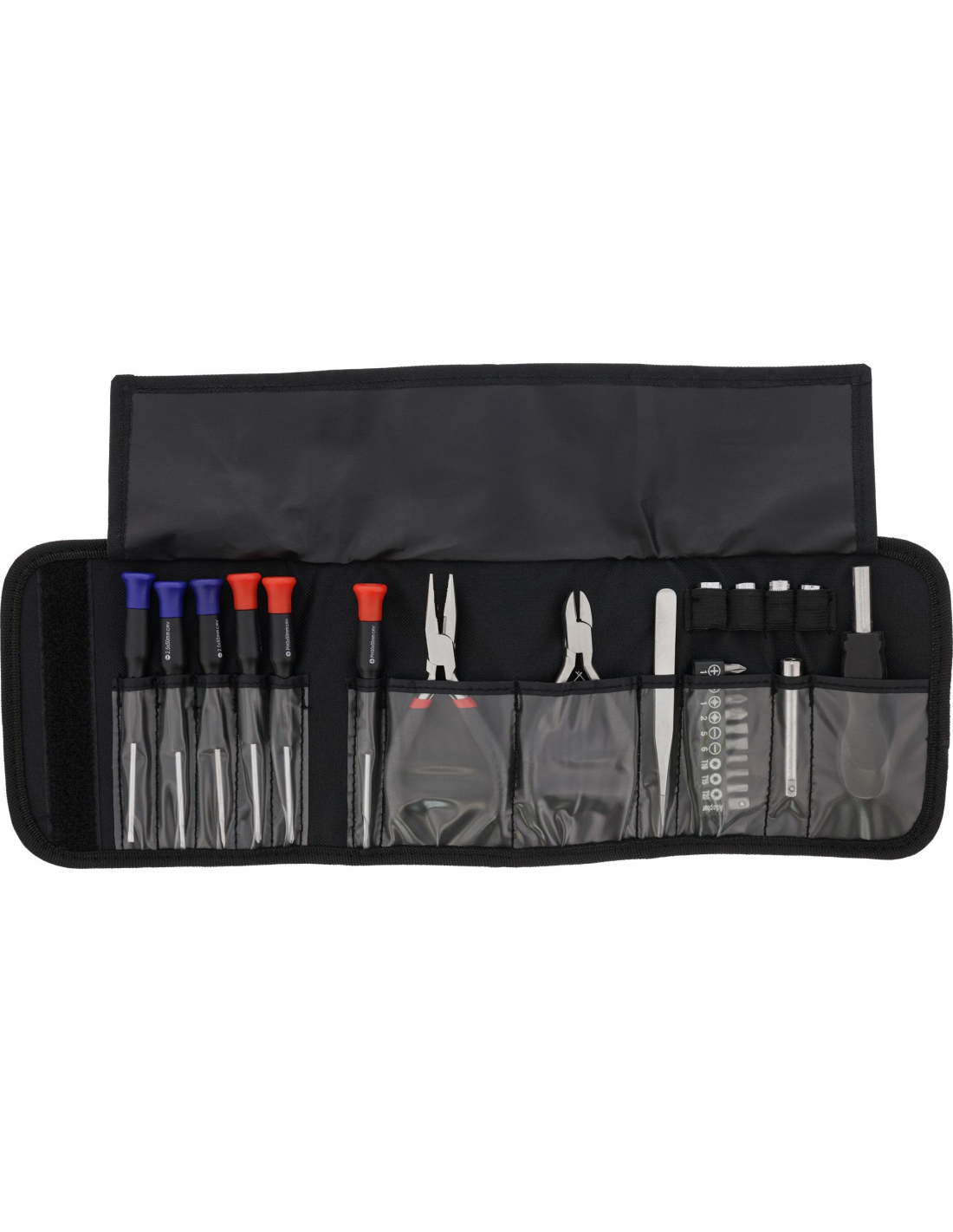 El juego de herramientas para el hogar y el ocio es ideal para cuando la puerta de un armario traquetea. El juego incluye: 1 Alicate de corte diagonal 1 Alicate universal pequeño con mordazas alargadas 1 Mango de destornillador con extensión, 9 puntas diferentes (adaptador PH1, PH2, PZ1, PZ2, SL5, SL6, T10, T15 y T20) y 4 vasos hexagonales (5, 6, 8 y 10 mm) 6 Destornilladores de precisión: planos (2,0, 2,5 y 3,0 mm) y de cruz (PH00, PH0, PH1) 1 Pinzas 1 funda bolsa