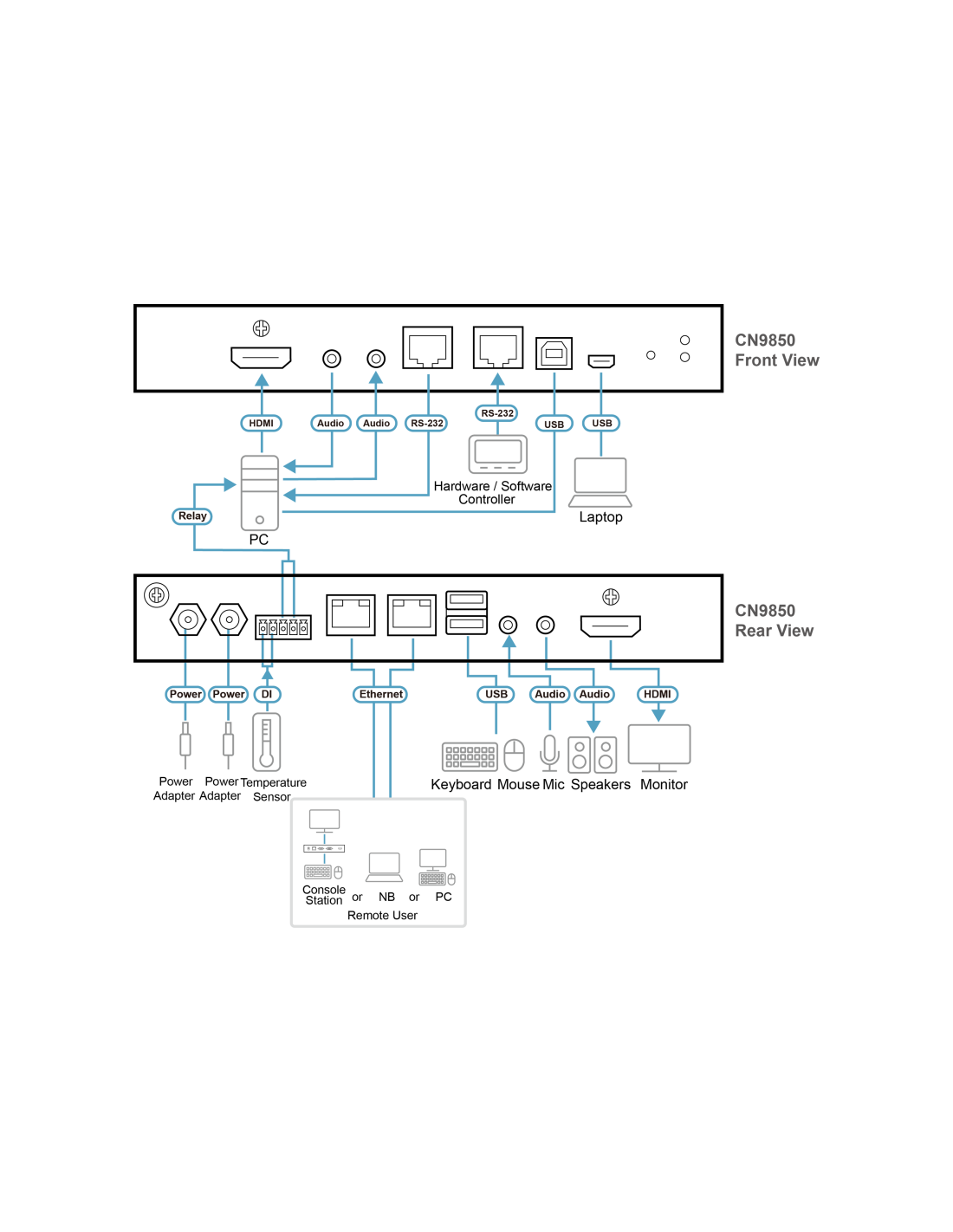 1. El audio no es compatible con CN9850 HDMI y sólo puede transmitirse a través de sus puertos de audio de 3,5 mm.