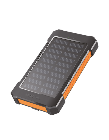 Bateria Externa Power Bank 8000 Solar 2 puertos USB-A de control de calidad Linterna Negro Naranja Logilink