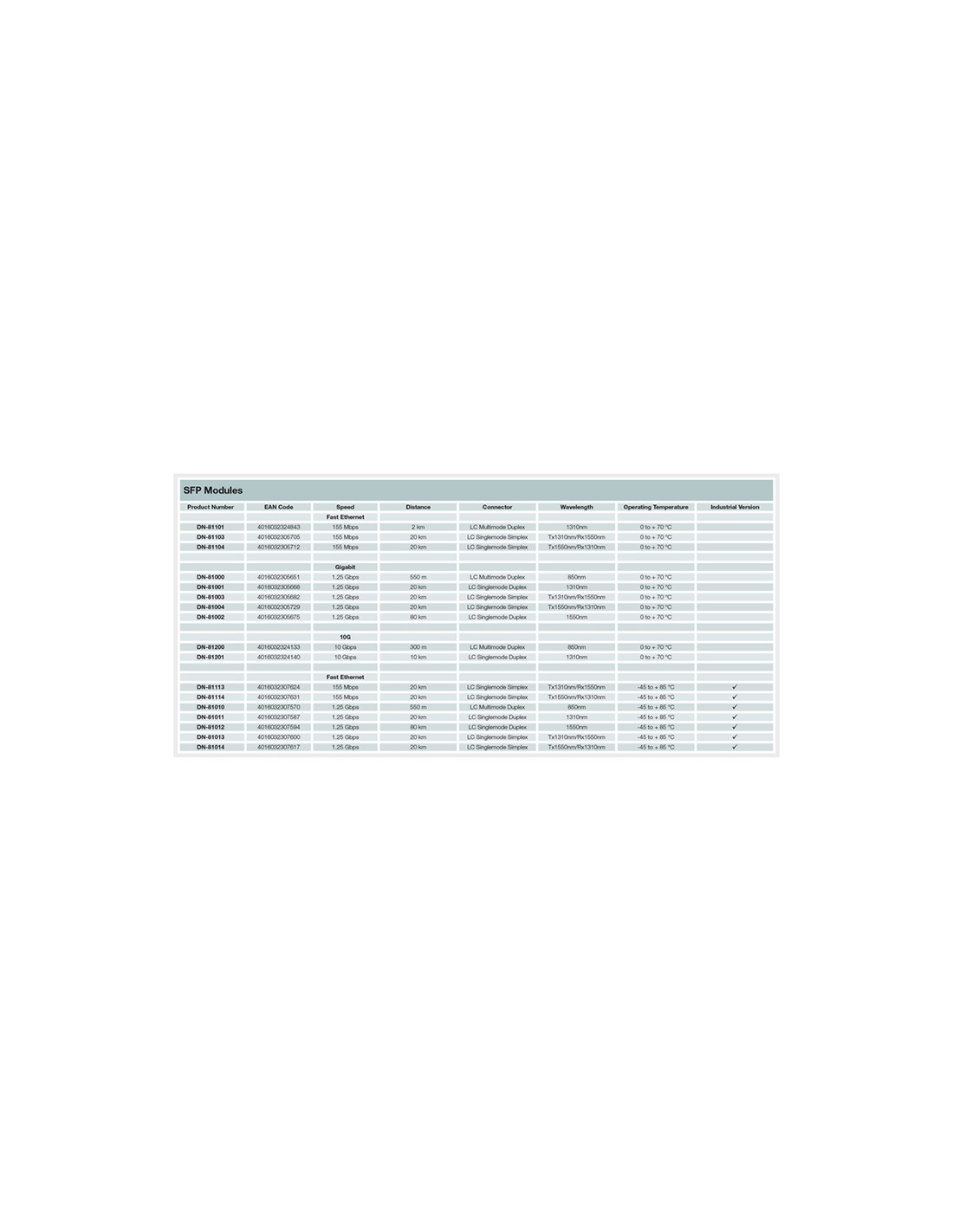 Envía datos en alta calidad y, además, ofrece la máxima fiabilidad. Distancia hasta 20 km a una velocidad de datos máxima de 1,25 Gbps. Rango de temperatura de funcionamiento: De...
