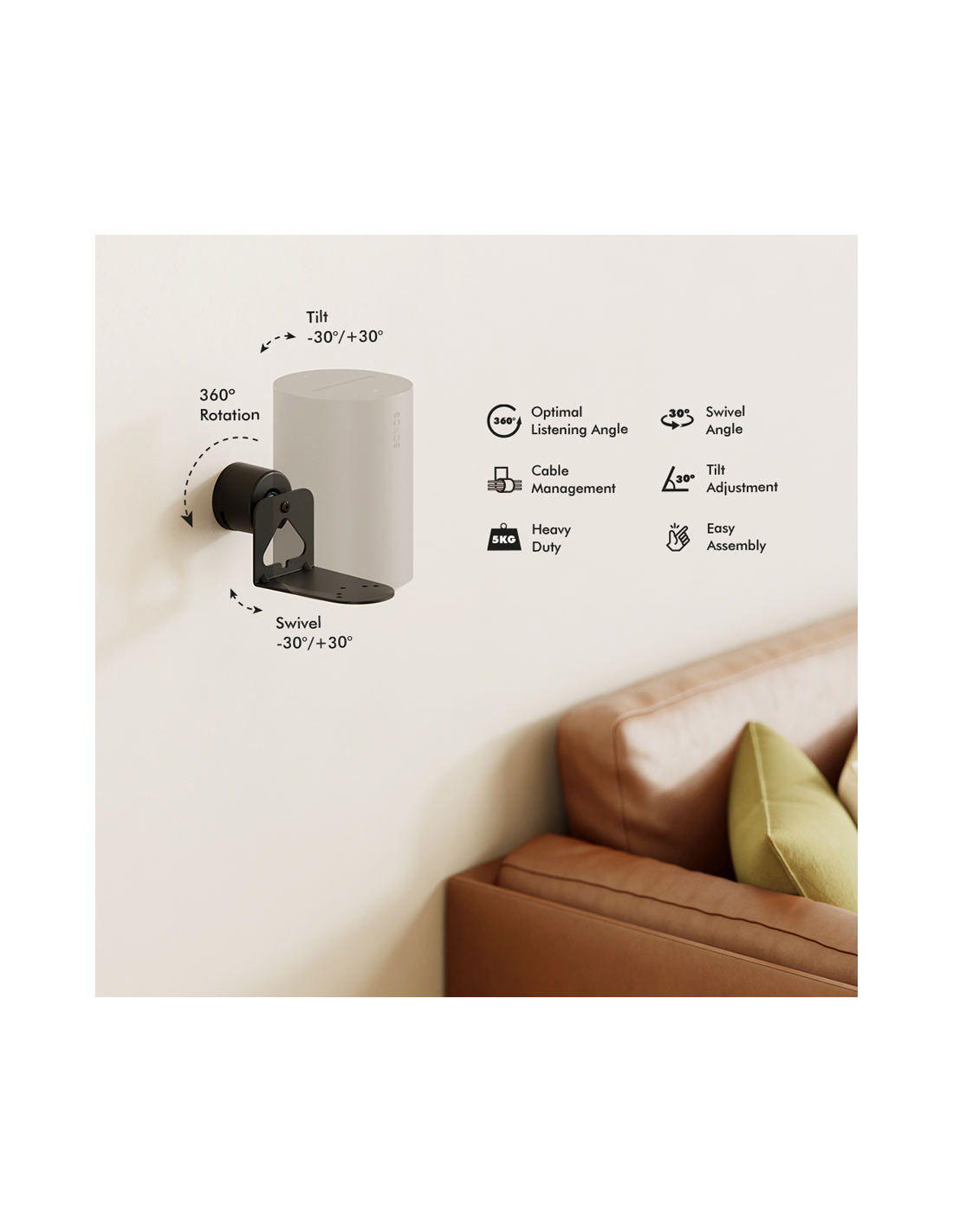 Soporte de pared para altavoces SONOS ERA 100 y 300, máx. 5 kg, negro