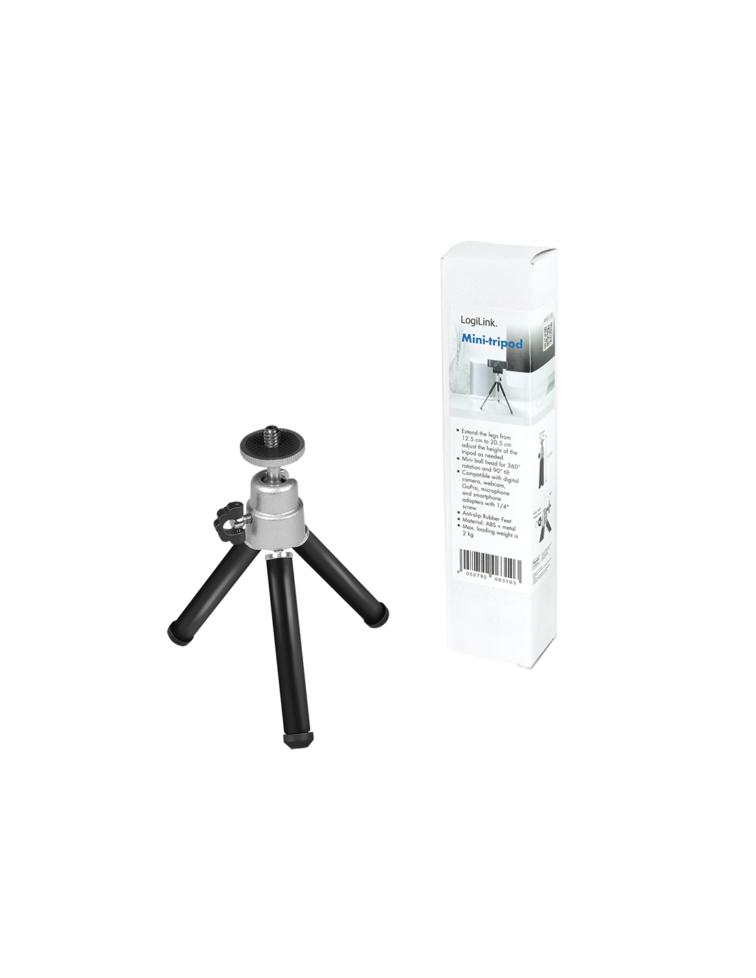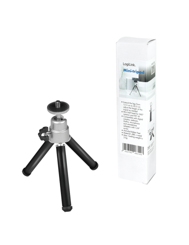 - Mini trípode portátil, ajustable en altura, rotación de 360°, máx. 2 kilogramos