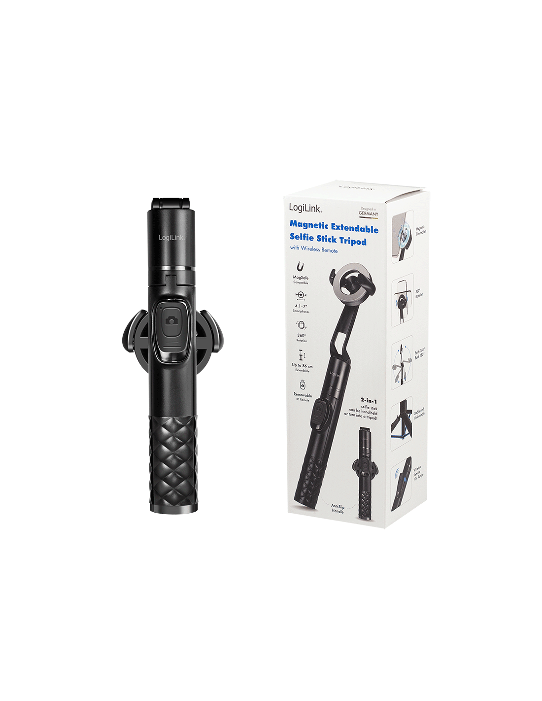 Este versátil palo selfie es el compañero ideal para quienes disfrutan tomando fotos y videos en cualquier lugar. Con un agarre antideslizante y un botón de grabación integrado, ofrece comodidad y control óptimos. Es compatible con smartphones de 4,1 a 7 pulgadas y gira 360°, perfecto para tomar fotos desde cualquier ángulo. El mango extensible alcanza una longitud de hasta 86 cm, ideal para fotos de grupo o impresionantes paisajes. Gracias a la compatibilidad con MagSafe y al control remoto inalámbrico extraíble, tomar fotos es pan comido. La pantalla LED muestra información sobre el modo de disparo y el estado de carga. Fabricado en resistente aleación de aluminio y ABS, este palo selfie es ligero y duradero.
