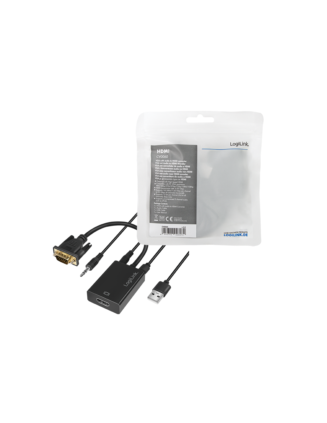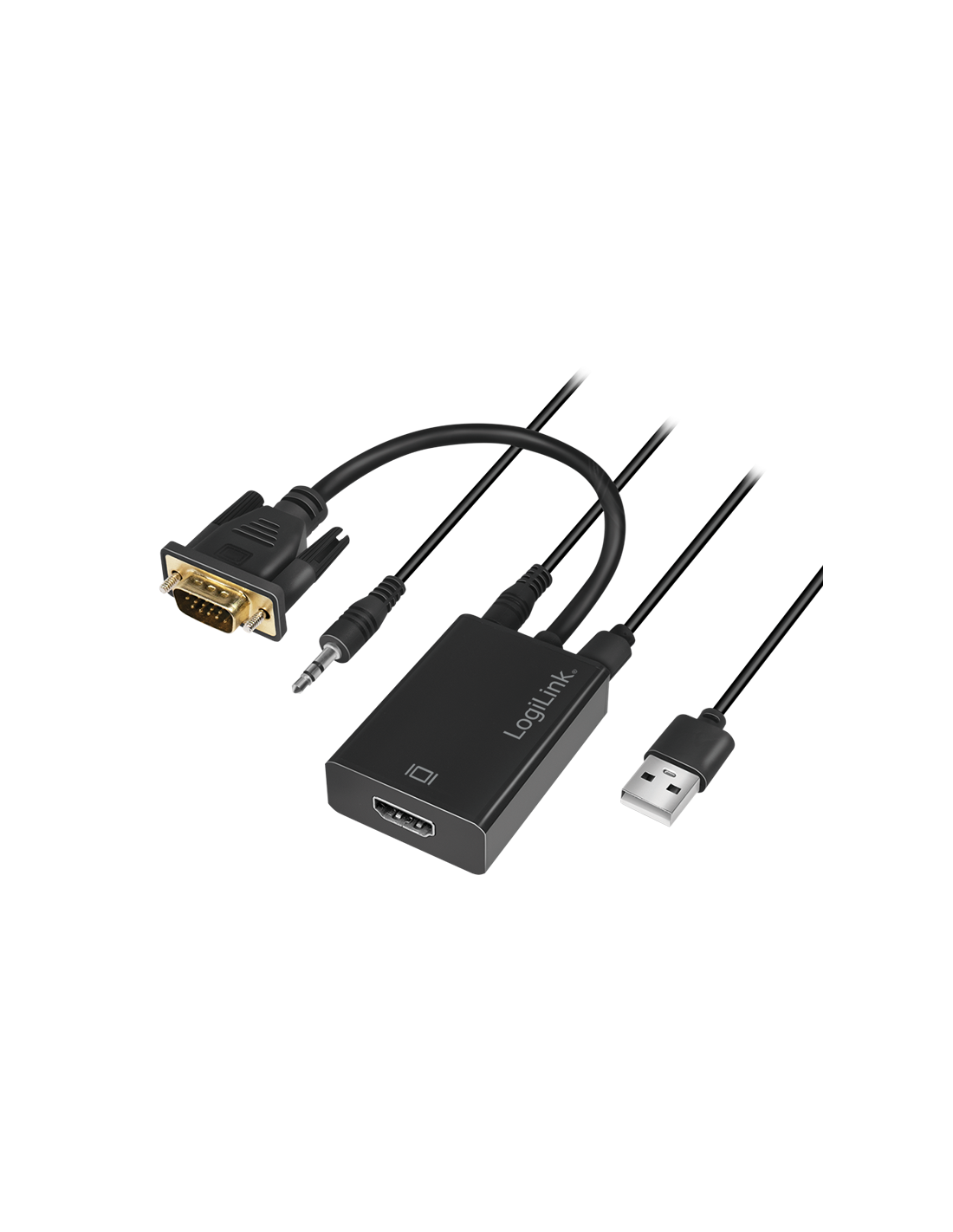 Conversor de VGA a HDMI + audio (3,5 mm) Full HD (1080p), tipo cable (15 cm), negro